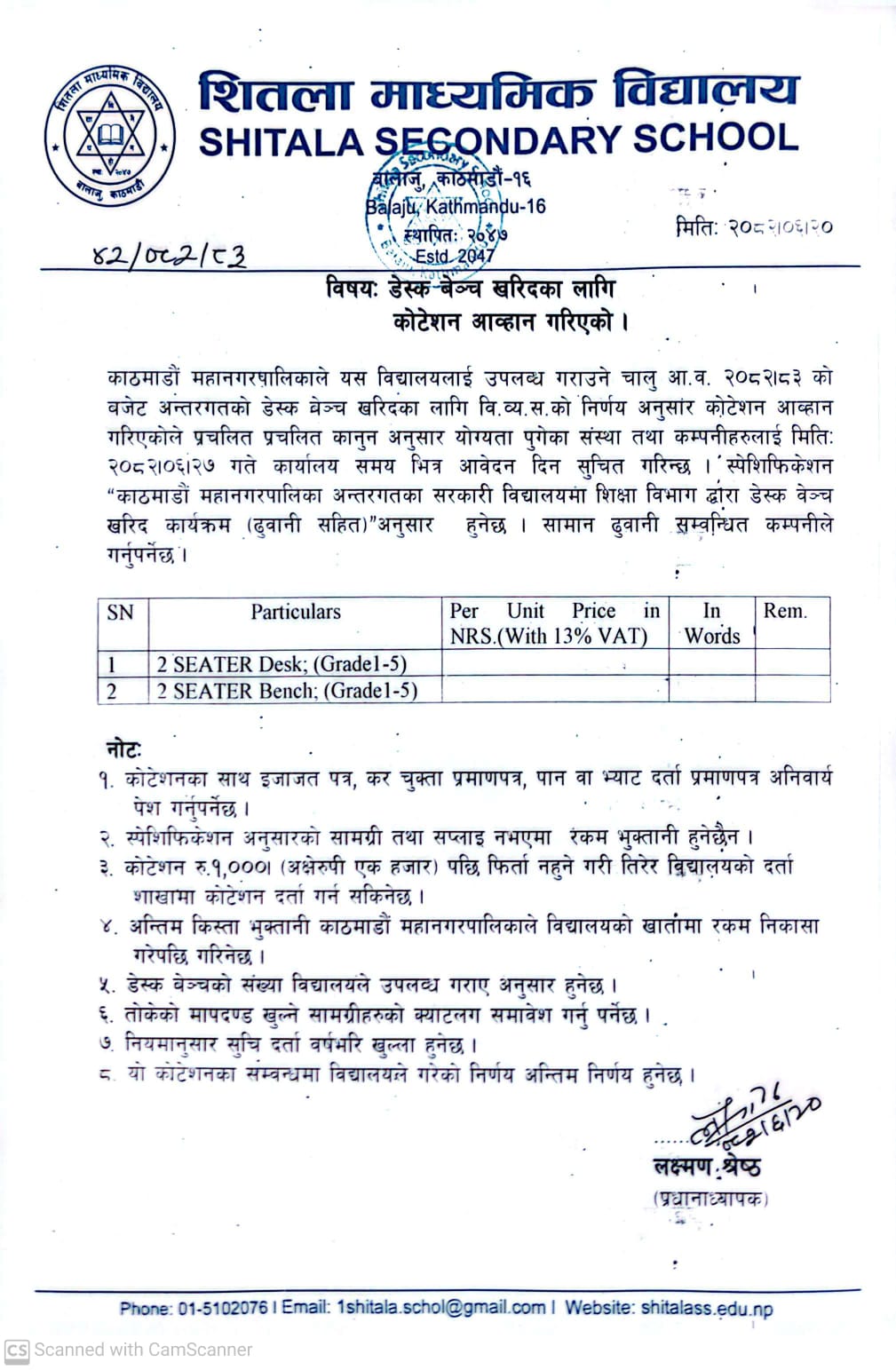 Shitala Second… 7 October 2025 File डेक्स बेन्च खरिदका लागि कोटेशन आह्वान गरिएको सम्बन्धमा (187.78 KB)