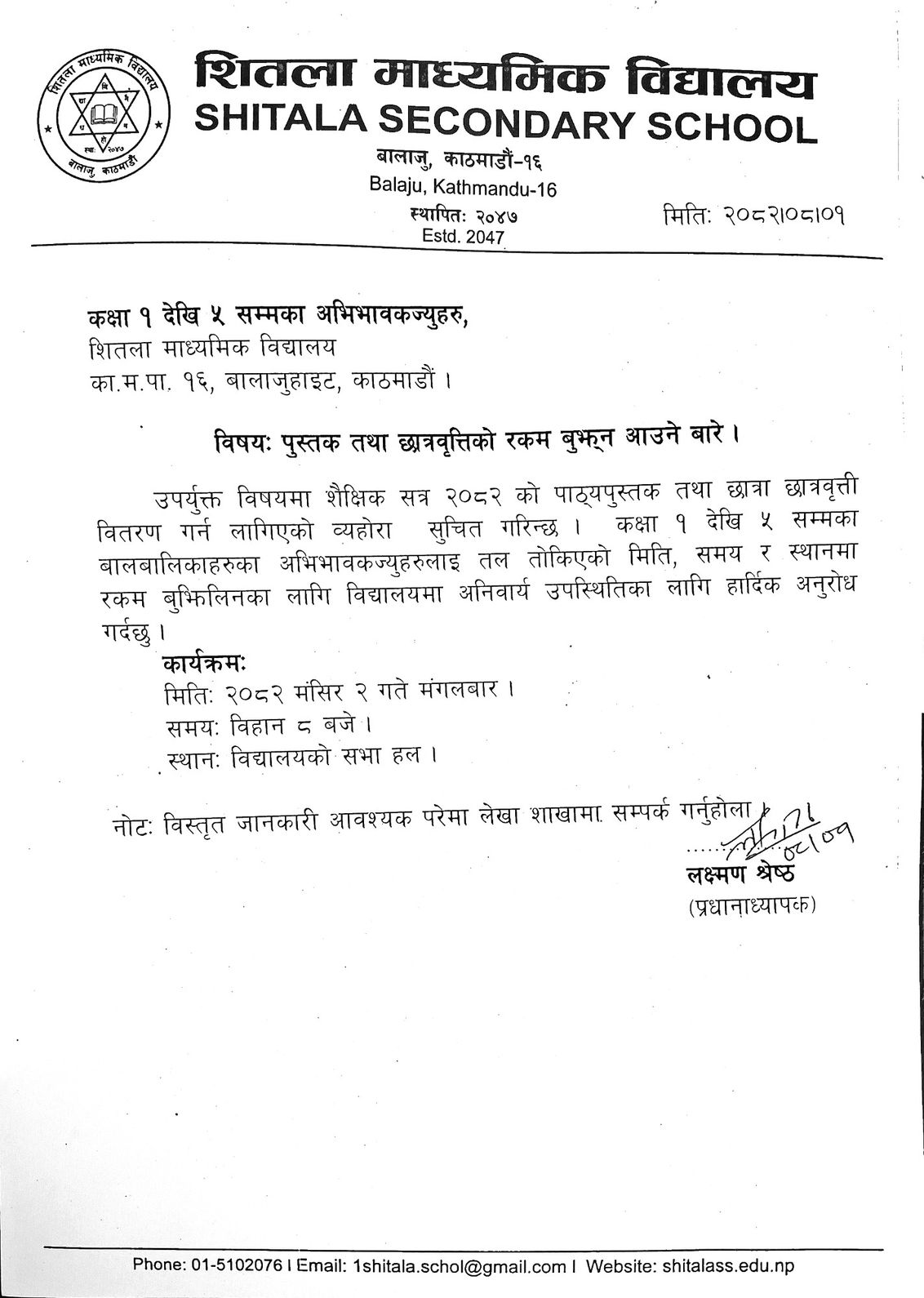 पुस्तक तथा छात्रवृत्तिको रकम वितरण सम्बन्धमा